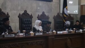 KABUPATEN CIREBON — Bupati Cirebon, Imron, menghadiri rapat paripurna dengan agenda hantaran bupati terhadap Rancangan Peraturan Daerah (Raperda) tentang Perubahan APBD Tahun Anggaran 2025 di ruang rapat Abhimata DPRD Kabupaten Cirebon, Jumat (4/7/2025).