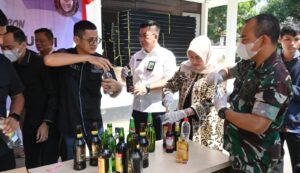 – Minuman keras berbagai merek sebanyak 825 botol dan 1 jeriken
