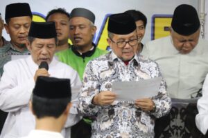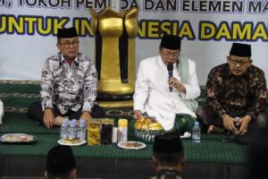 Suasana doa bersama berlangsung khidmat. Para kiai dan tokoh agama memimpin lantunan doa yang dipanjatkan agar bangsa Indonesia dijauhkan dari perpecahan.
